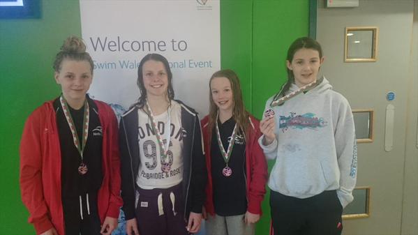 Other medal winners in the girls team were Orla Davies with a gold (200 fly), 2 silvers and a bronze, Alice Hyndman with 2 silvers (400IM/free) and a bronze, Lauren Thomas a gold (400 free), 2 silvers & 2 bronzes, and Nicola Topliss a bronze for 200IM. They were joined by Hollie Clark, Polly Nevin, Ffion & Maddy Rees and Angharad Smith who all managed a number of PBs each.